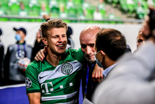 Sigér dávid a gólja után a meze alá rejtette a labdát.